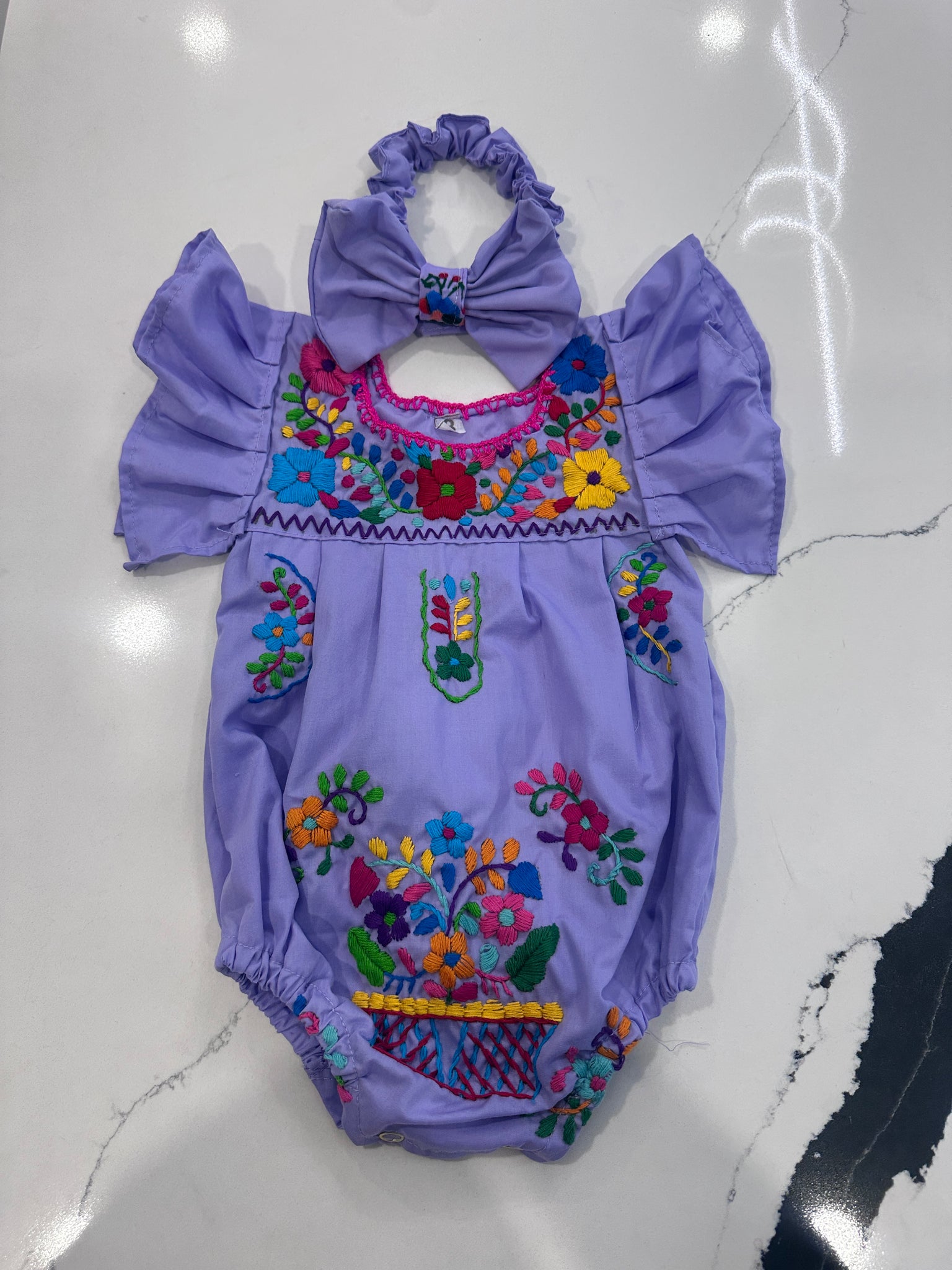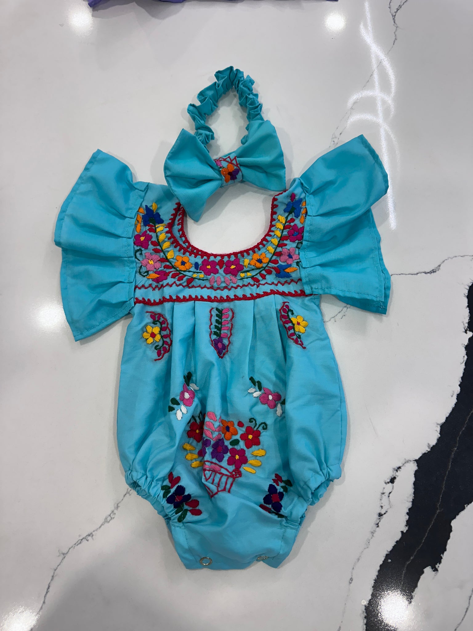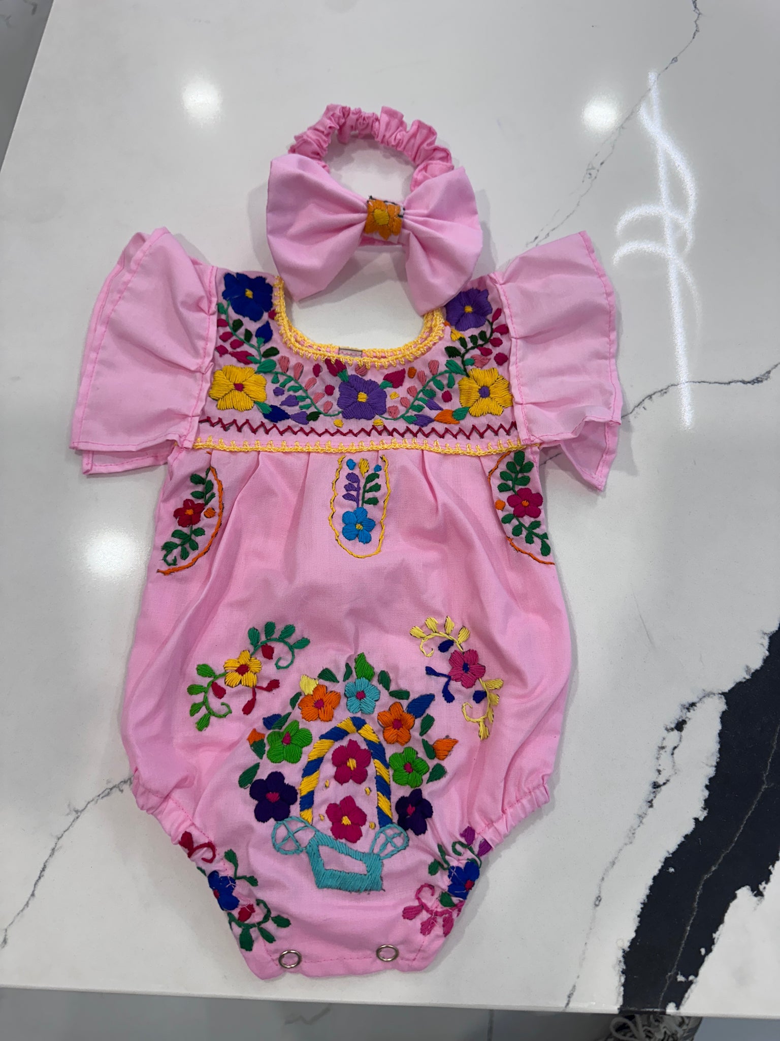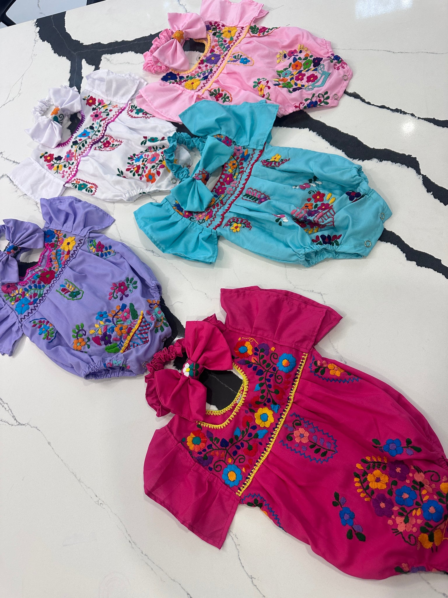 each outfit is hand embroidery meaning flowers are unique and different